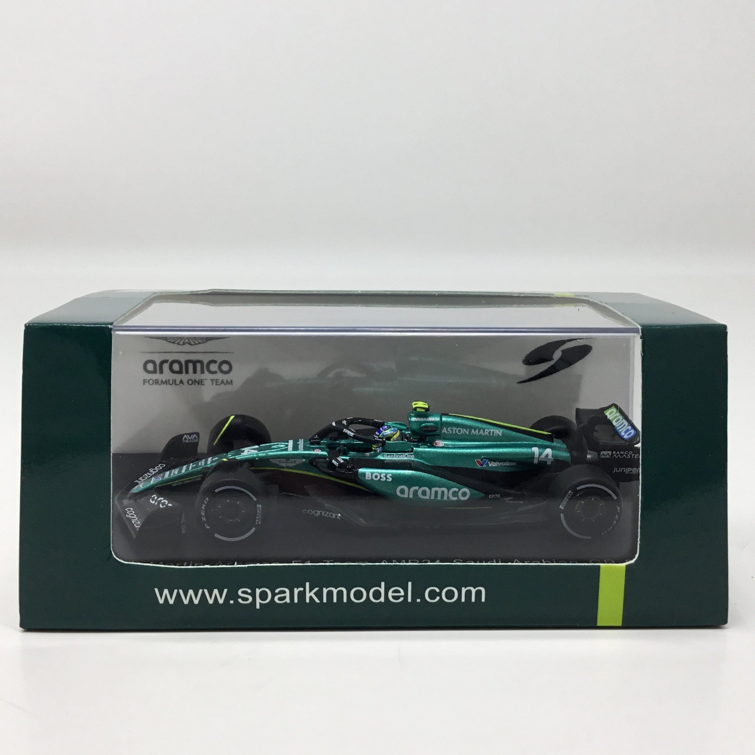 Fernando Alonso 2024 Aston Martin Aramco AMR24 Spark F1 1:64 Diecast
