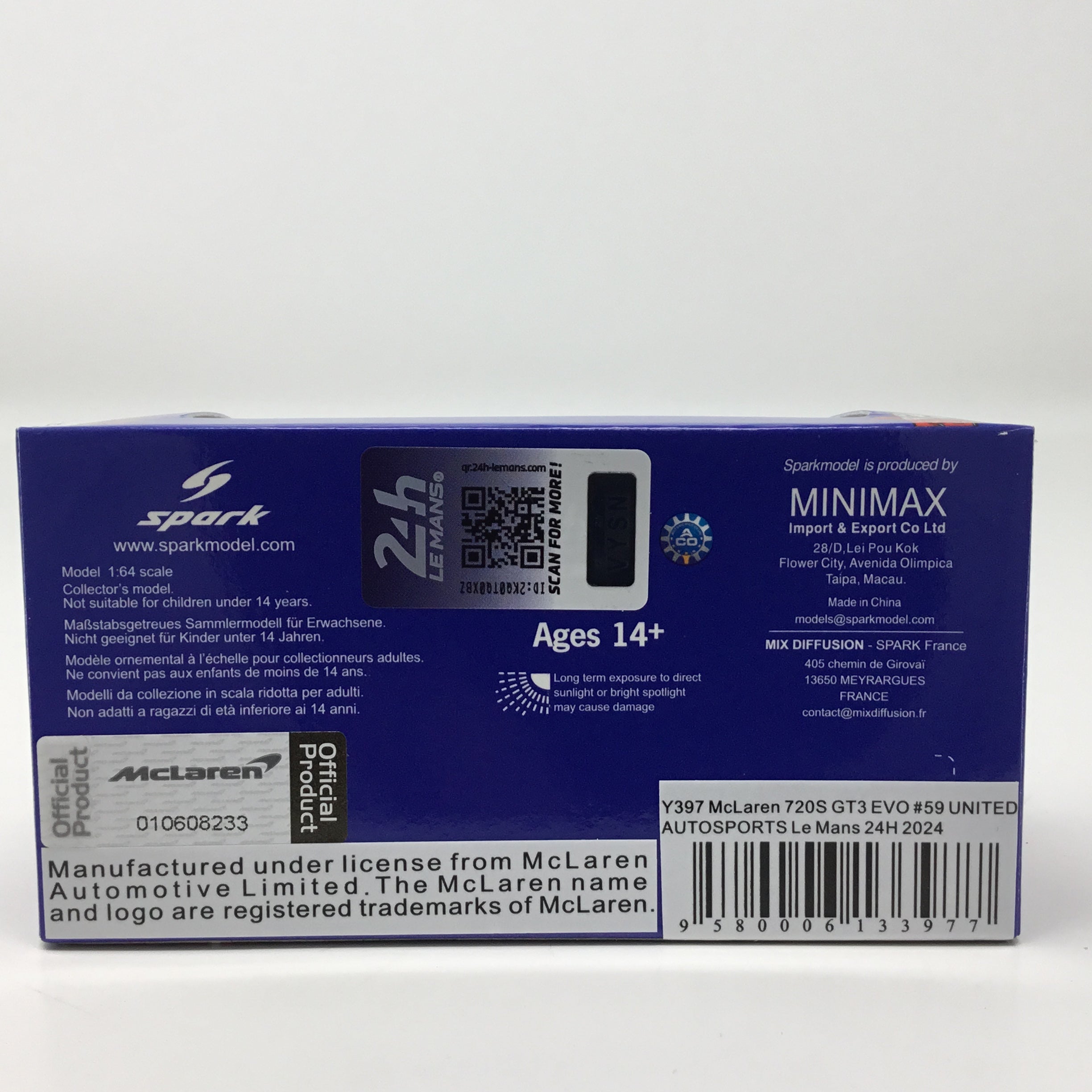 McLaren 2024 720S GT3 Evo #59 United Autosports Le Mans 24H 1:64 Diecast